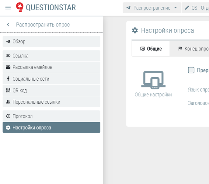 В зависимости от того, на каком этапе работы вы в данный момент используете интерфейс QUESTIONSTAR, есть два способа перейти к «настройкам опроса».