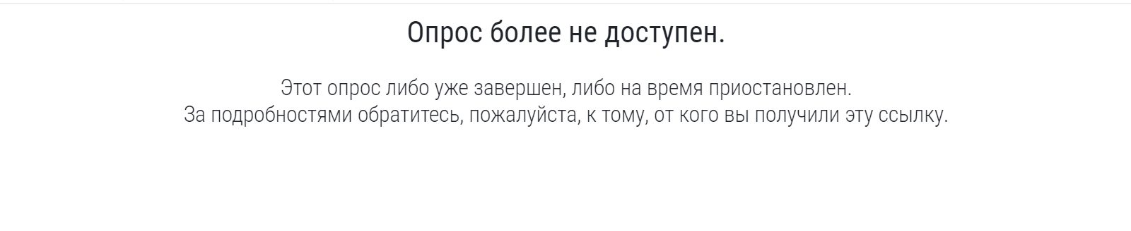 При вызове неактивного опроса желающие пройти опрос получают следующее сервисное сообщение: