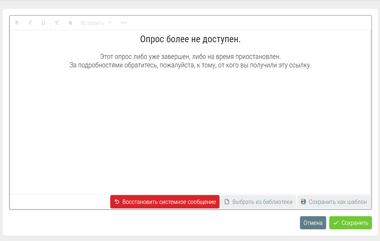 Чтобы настроить сервисное сообщение при доступе к неактивному опросу: