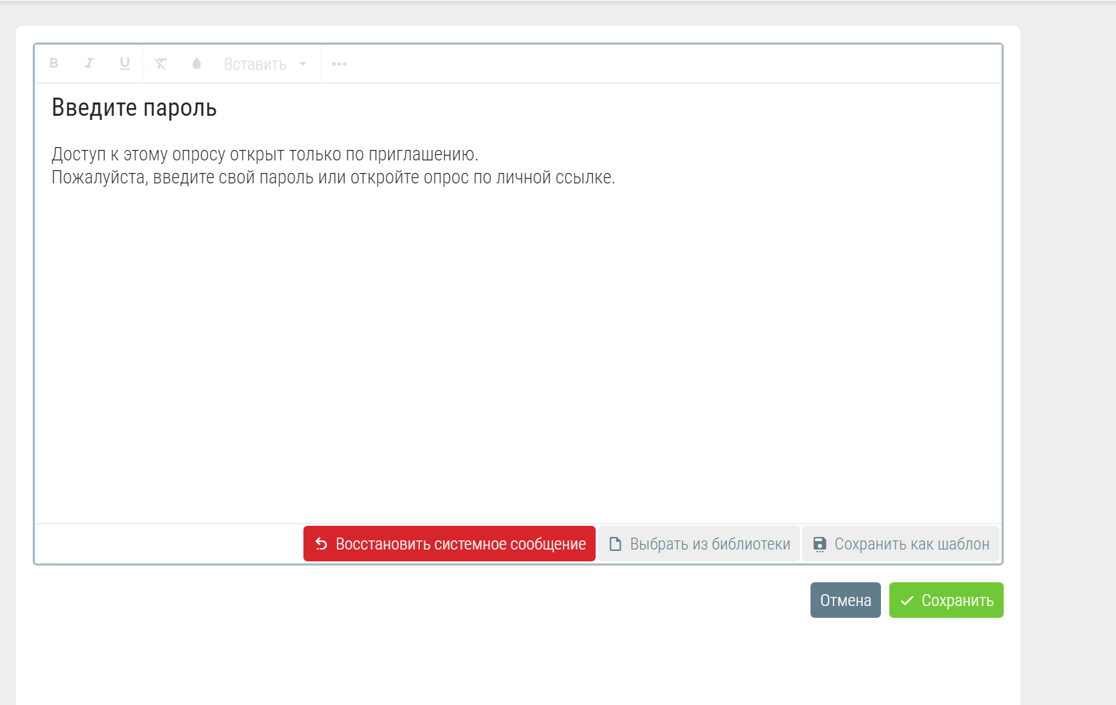 Вы можете сохранить настроенный текст в качестве шаблона для повторного использования в других анкетах. Для этого нажмите на кнопку «Сохранить как шаблон».